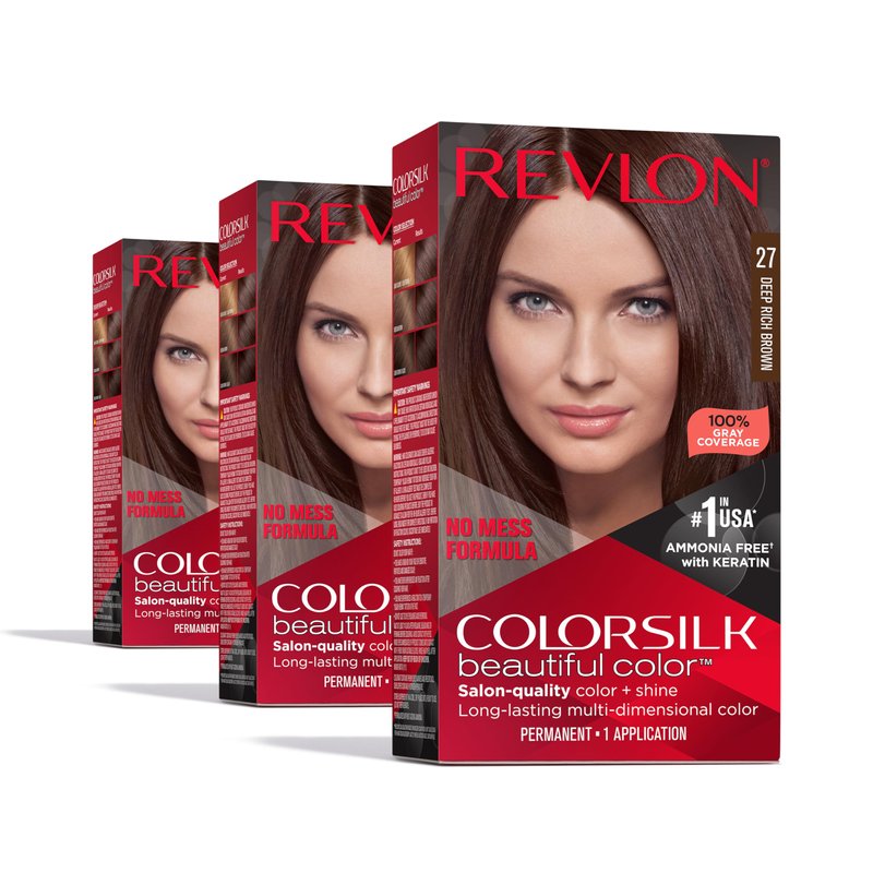 Revlon Permanent Hair Color, Permanent Brown Hair Dye, Colorsilk with 100% Gray Coverage, Ammonia-Free, Keratin and Amino Acids, Brown Shades (Pack of 3)