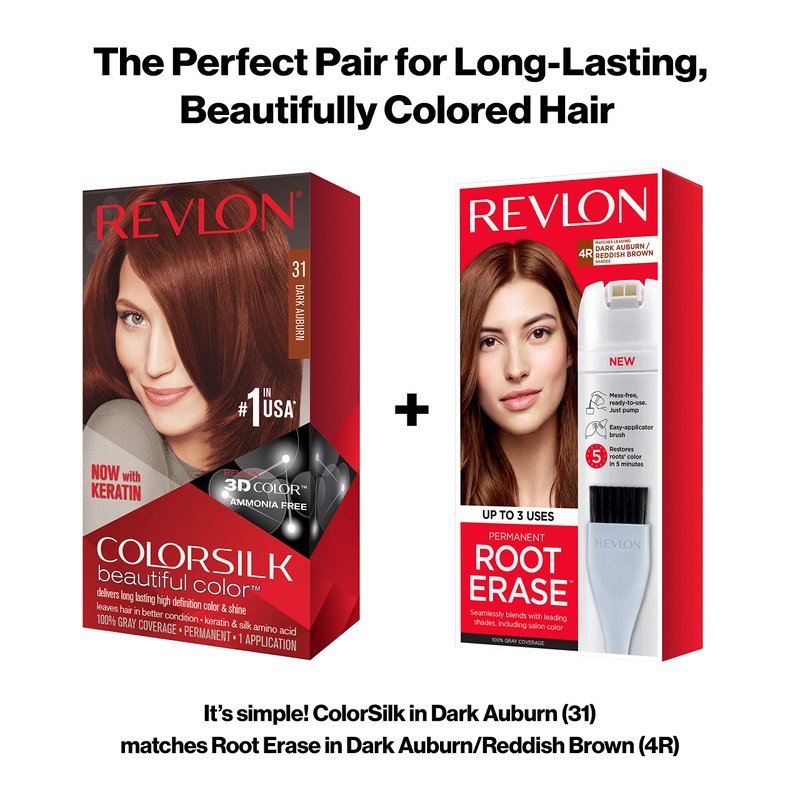 Revlon Permanent Hair Color, Permanent Hair Dye, Colorsilk with 100% Gray Coverage, Ammonia-Free, Keratin and Amino Acids, 31 Dark Auburn, 4.4 Oz (Pack of 1)