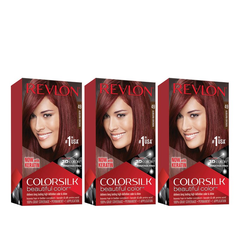 Revlon Permanent Hair Color, Permanent Hair Dye, Colorsilk with 100% Gray Coverage, Ammonia-Free, Keratin and Amino Acids, 49 Auburn Brown, 4.4 Oz (Pack of 3)