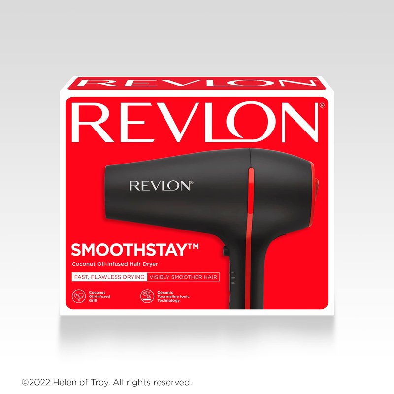 REVLON SmoothStay Coconut Oil Infused Hair Dryer with Diffuser | 1875W Blow Dryer Improves Shine for Smoother Styles and Tames Frizz for Silky Finish (Black)