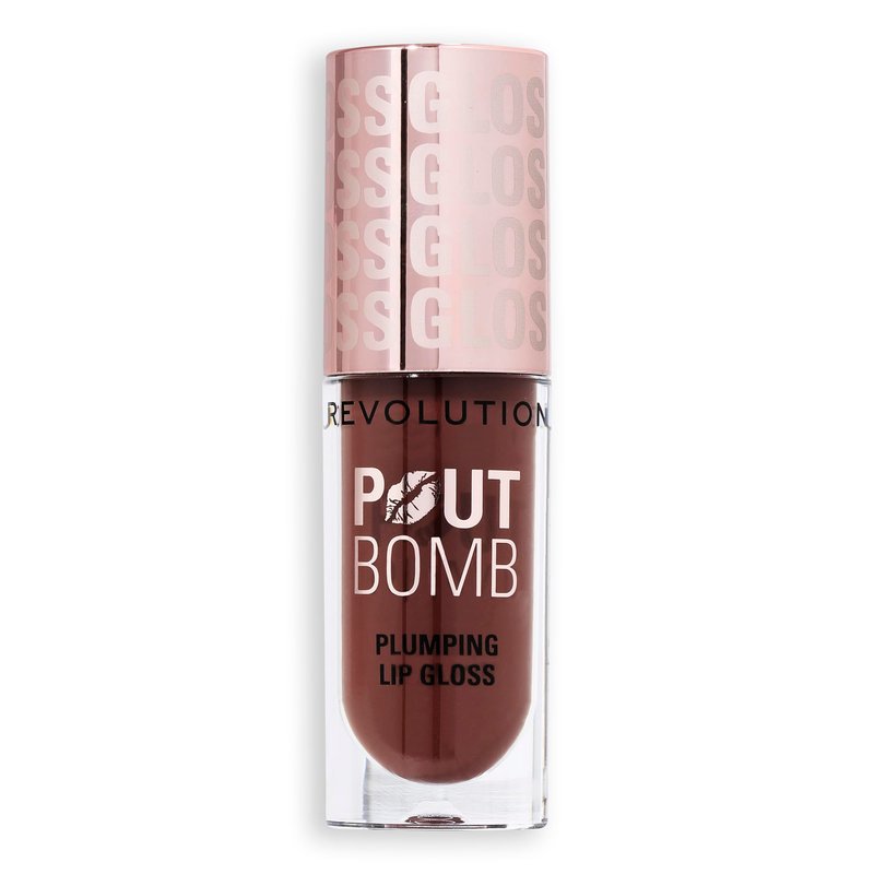 Revolution Beauty, Pout Bomb Plumping Lip Gloss, High-Shine for Glossy, Fuller & Plump Lips with Hyaluronic Acid & Peptides, Vegan & Cruelty-Free, Espresso Cool Nude & Brown, 0.15 Fl Oz