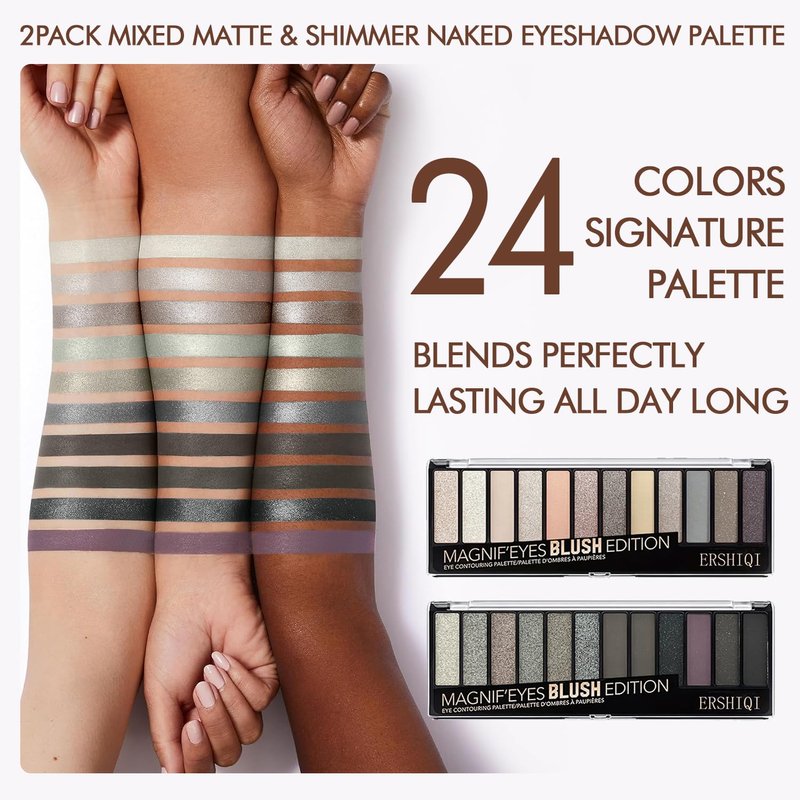 - 👄Naked Neutral Eyeshadow- Including 2 packs mixed matte & shimmer eyeshadow palette totally 24 nude shades of neutral tones,warm and cool toned, from taupes to rich brown, glitter to black to make smokey eyeshadow,our naked eyeshadow palette creates a variety of eye-catching looks,perfect for makeup beginners and professionals.