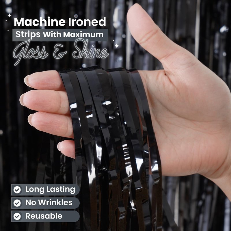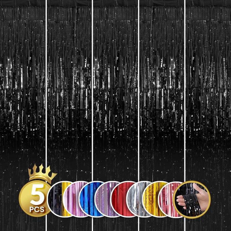- ✅ High-Quality Black Fringe Curtain: Crafted with precision, our tinsel curtain backdrop promises not only a dazzling display but also a long-lasting decoration. Whether you're hosting a silver party decorations birthday bash or a festive gathering, these fringe curtains party decorations will elevate the ambiance and leave your guests in awe