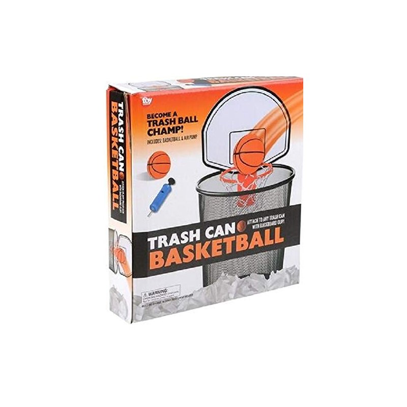 - 8.5" Trash Can Basketball Set Packaged in a colorful box Set includes: back board, ball, mini air pump Sold by the set Ages 3+
