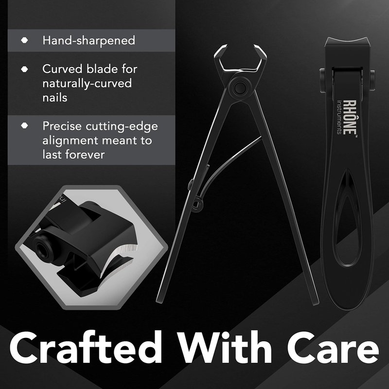 - Unmatched Sharpness: Experience the precision of Rhône Instruments Black Nail Clippers with a very sharp blade that ensures a clean, perfect cut without tearing or splitting nails. Perfect for fingernails and toenails, these clippers guarantee salon-quality results at home.