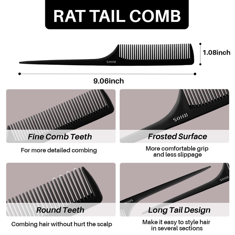 - 【Durable and Stable】RHOS Rat Tail Comb is made from ABS material,make the comb more sturdy.The high quality Fine Tooth Combs are not easily deformed or damaged and is lighter and more durable than ordinary hair combs.