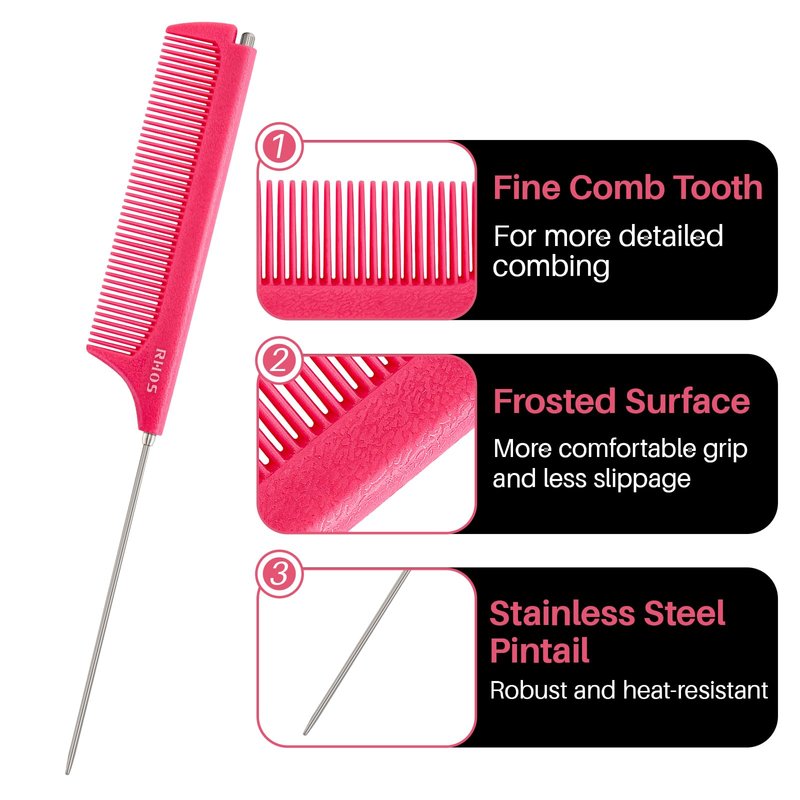 - 【Durable and Stable】RHOS Rat Tail Comb is made of carbon,which is not easily deformed or damaged and is more durable than ordinary combs.The pin tail is made of stainless steel,which is not only heat-resistant but also anti-static.