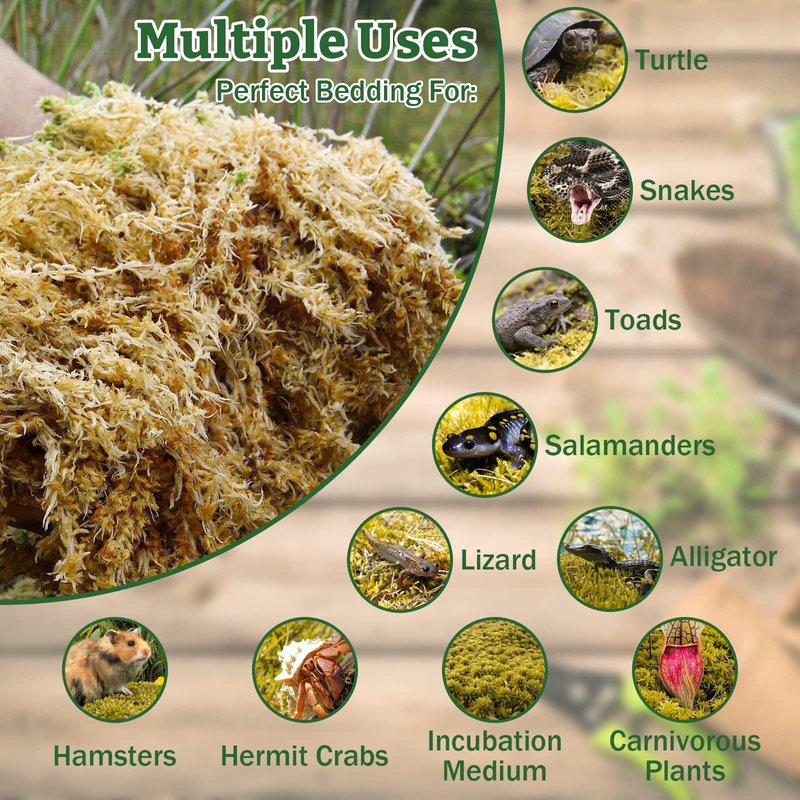 - 【Premium Material】Our sphagnum moss for reptiles contain no odors and free impurities, give pets a more comfortable habitat. They retain moisture and humidity well for terrarium and have excellent breathability.