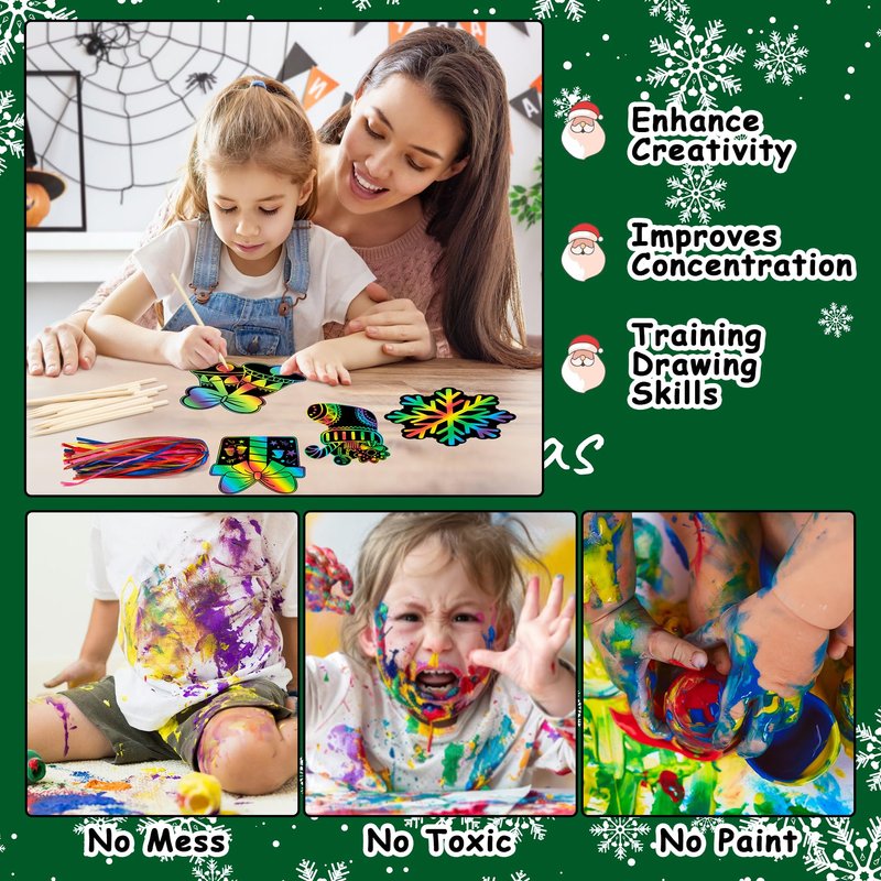 - Premium Quality: Crafted from Thick, Sturdy, and Safe Paper, Our Christmas Scratch Papers Ensure a Worry-Free Creative Experience for Kids and the Whole Family. Vibrant Rainbow Colors and Intricate Patterns Await Beneath the Matte Coating.