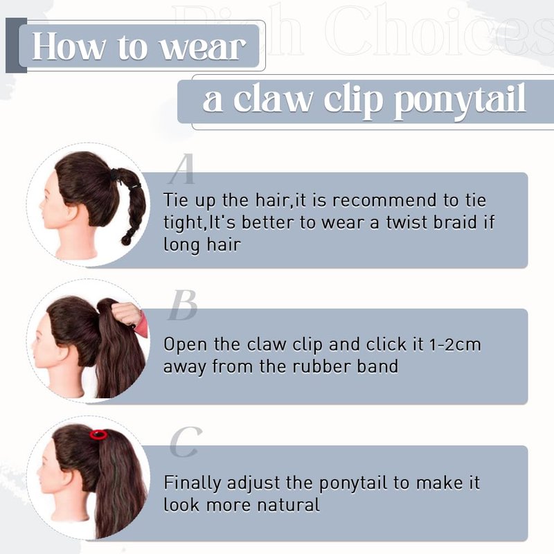 - Style: claw clip on human hair ponytail