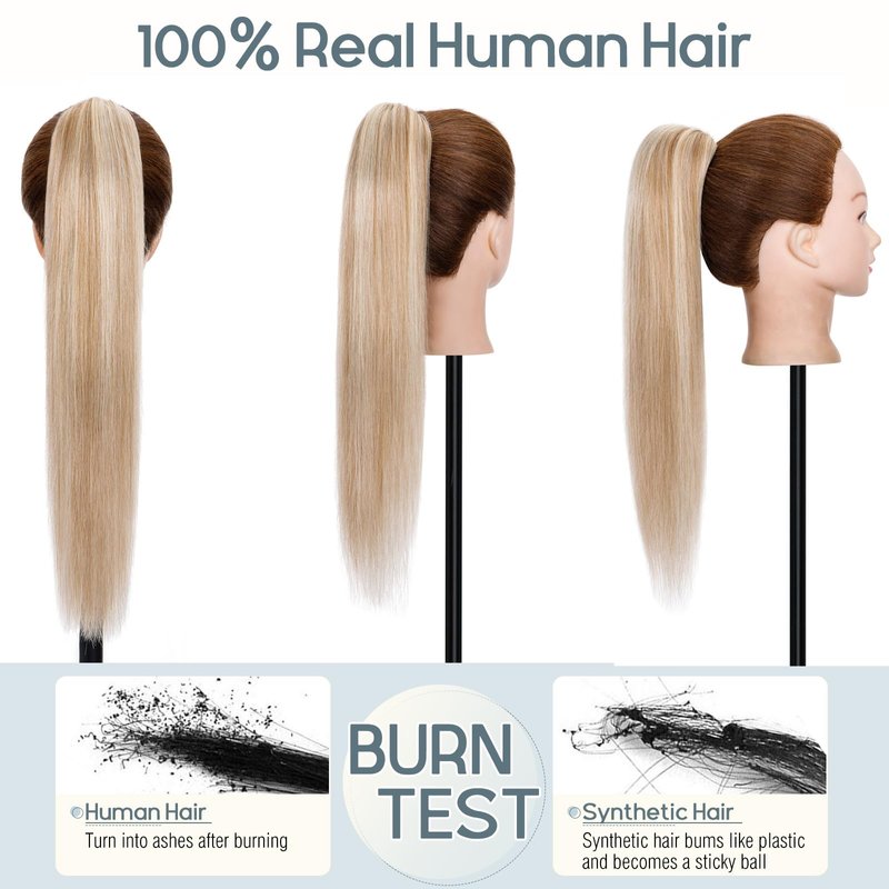 - ❤ This real hair clip in ponytail is made of 100% remy human hair with no other materials mixed. Can be combed, washed, straightened, permed, dyed, or curled. (Temperature better below 356 ℉/180℃ for a short time). But please remember that frequent styling may cause dry ends or split. Use a mild hair conditioner to prolong the usage of extensions.