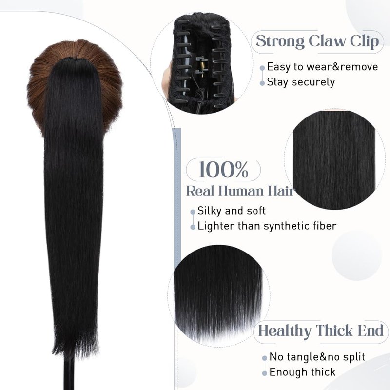 Rich Choices Claw Clip Ponytail Extension Human Hair Real Hair Ponytail Extension Balayage Jet Black 20 Inch 120g One Piece Clip In Long Ponytail Hair Extensions Straight For Women #1