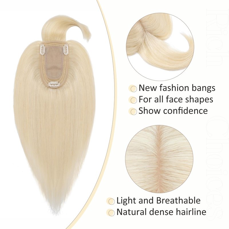 Rich Choices Hair Toppers For Women 100% Real Human Hair Topper With Bangs Silk Base Clip In Top Hair Pieces For Women With Thinning Hair (Bleach Blonde, 14 Inch)