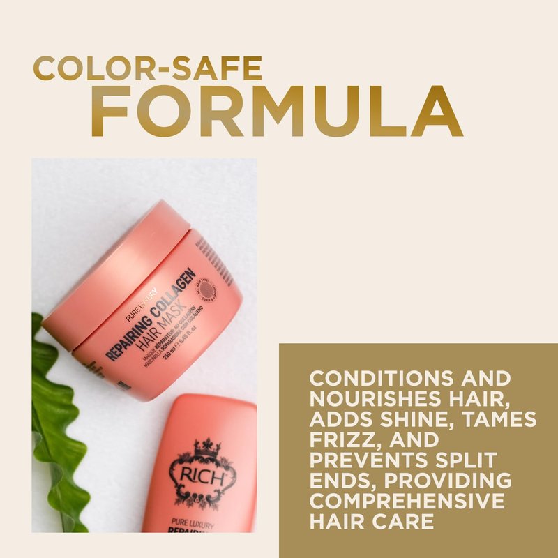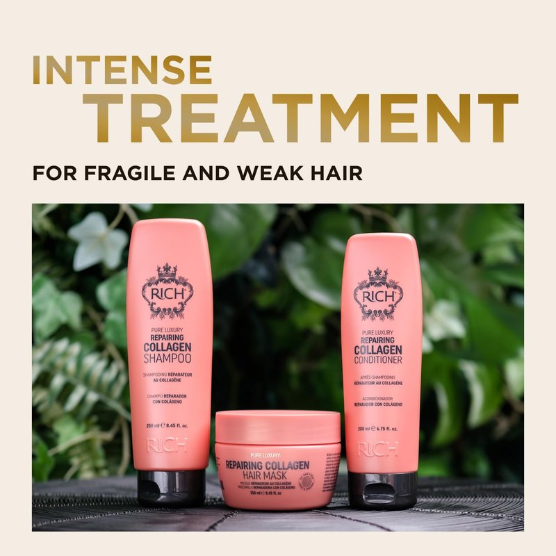RICH Pure Luxury Repairing Collagen Hair Mask for Dry & Damaged Hair - Deep Conditioning & Moisturizing Hair Repair Treatment - Hair Proteins, Collagen, Marula Oil & Macadamia Nut Oil - 8.45oz