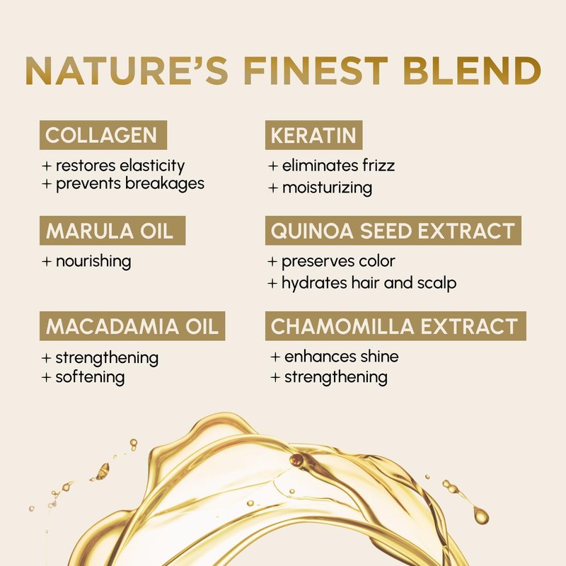 - INFUSED WITH COLLAGEN, MACADAMIA NUT OIL & MARULA OIL : Enriched with a powerful blend of macadamia nut oil, marula oil, and collagen, our hair mask restores damaged hair while replenishing strength, elasticity, and softness.