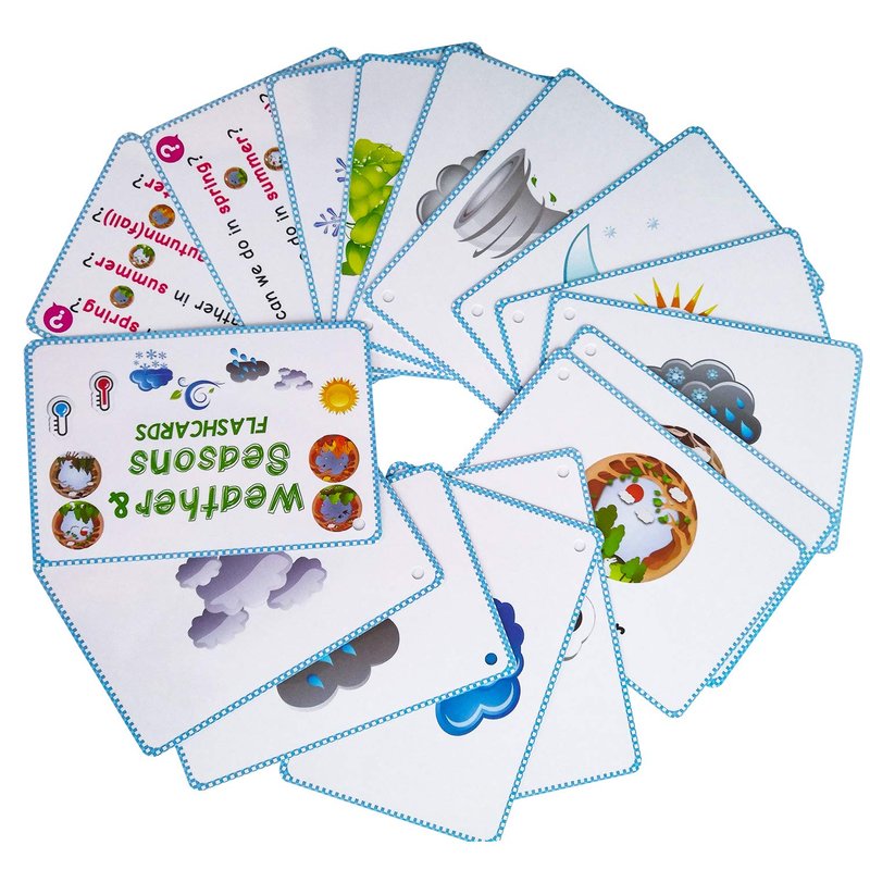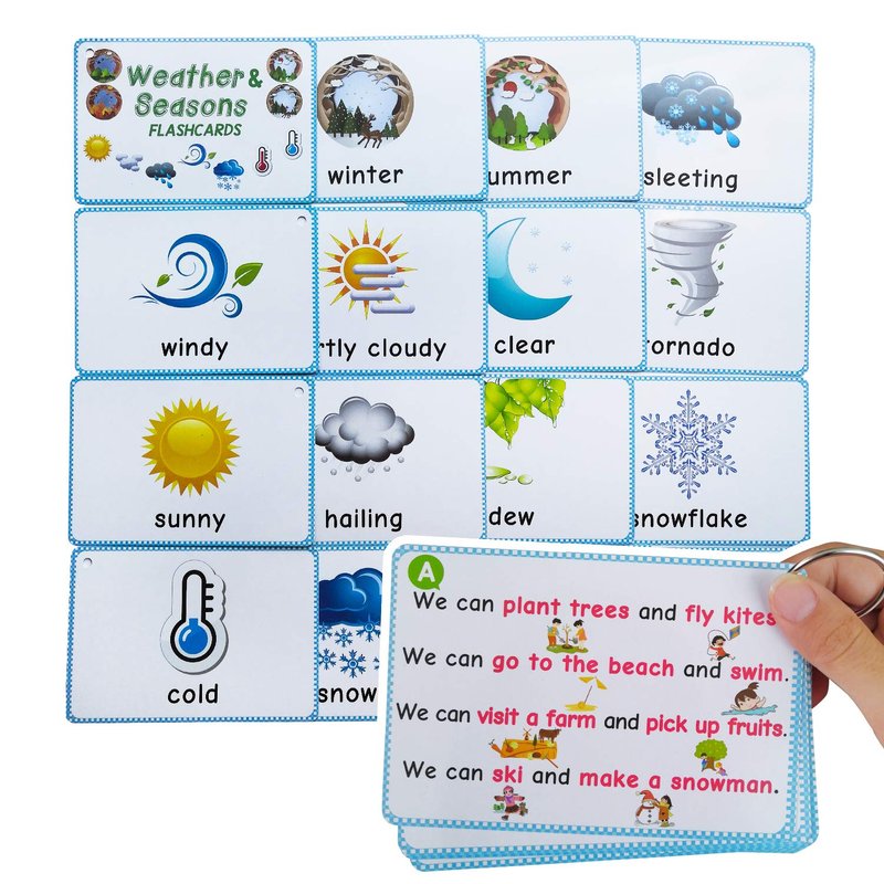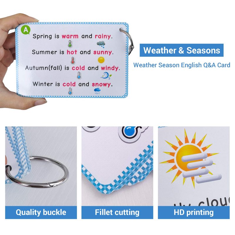 - 【Educational】Include 22 weather words, 4 seasons, 2 Q&A Cards. This is a tool for learning different weather description words.
