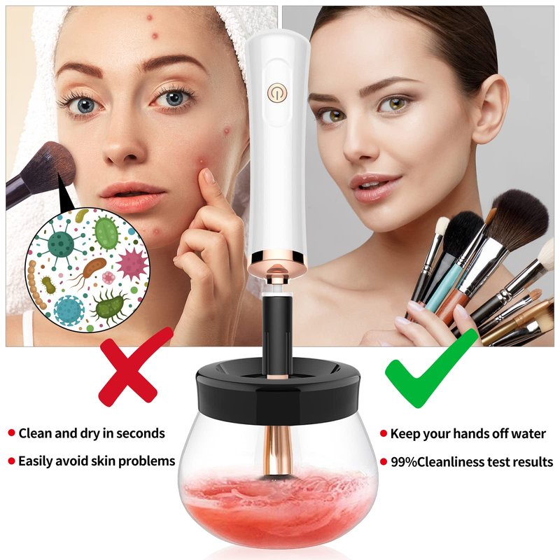 - Keep skin healthy: The old and dirty makeup brushes can lead to clogged pores, but this kind automatic makeup brush cleaner and dryer machine make brush clean and dry to keep the skin healthy.