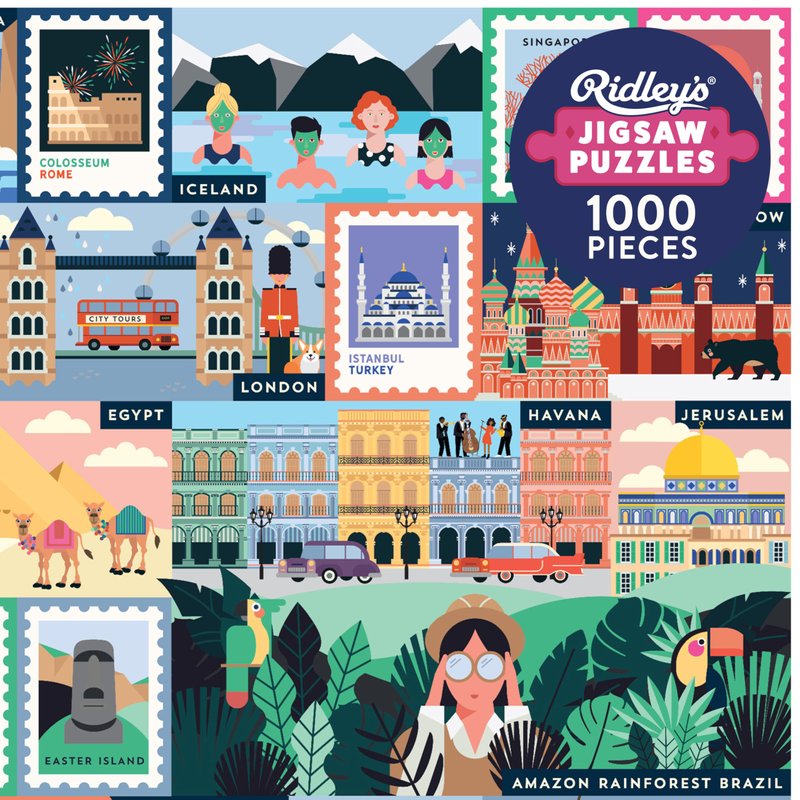 Ridley's: 50 Awe-Inspiring Travel Destinations Bucket List 1000-Piece Puzzle - Unique Art Style for Travel Lovers - Room Décor After Completion
