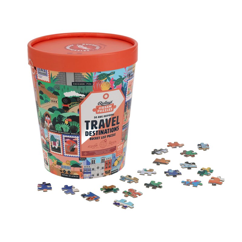 - 🧩1000 PIECE PUZZLE -- As you piece together this Awe-Inspiring Travel Destinations Bucket List Puzzle from Ridley's Games, you'll discover incredible destinations to add to your own bucket list, using the handy poster guide as a reference.
