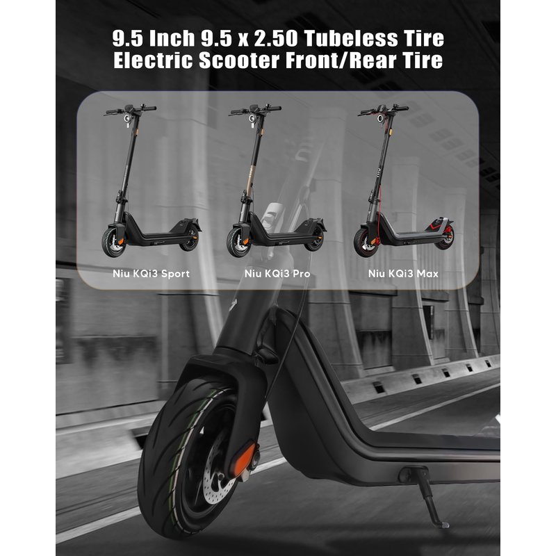 - The tubeless tires are specially designed to replace the original 9.5 inch 9.5x2.50 front or rear wheels for Niu KQi3 Sport / Pro / Max electric scooters.