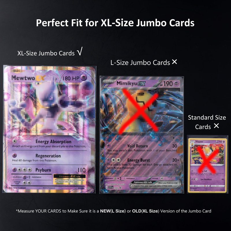 - Package Includes - 60 pack exact sleeves for jumbo card size XL. Please measure your jumbo card size before purchase - L size: 5.4"x7.4" , XL Size: 5.7" x7.9".