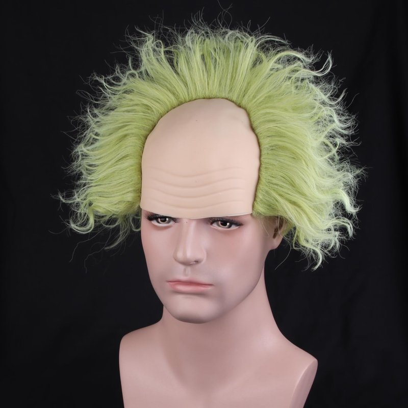 RightOn Green Wig with Bald Cap Costume Wig for Men and Women Short Curly Wig Green Wig Bald Cap Wigs for Cosplay Halloween