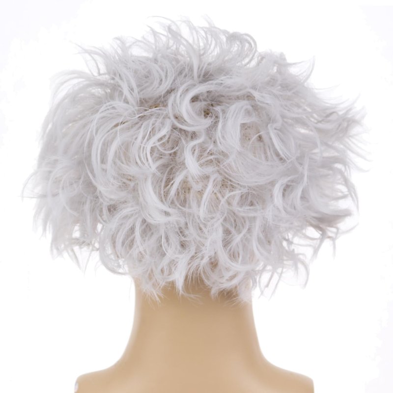RightOn Silver Gray Wig with Bald Cap Costume Wig for Men and Women Short Curly Wig Silver Gray Wig Bald Cap Wigs for Cosplay Halloween