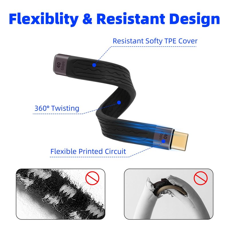 - 【40Gbps High Efficiency Transmission】Supports 40Gbps ultra-high speed transmission, which is 8 times faster than USB3.0/3.1 cables. 1G file can be transferred in just 1 second