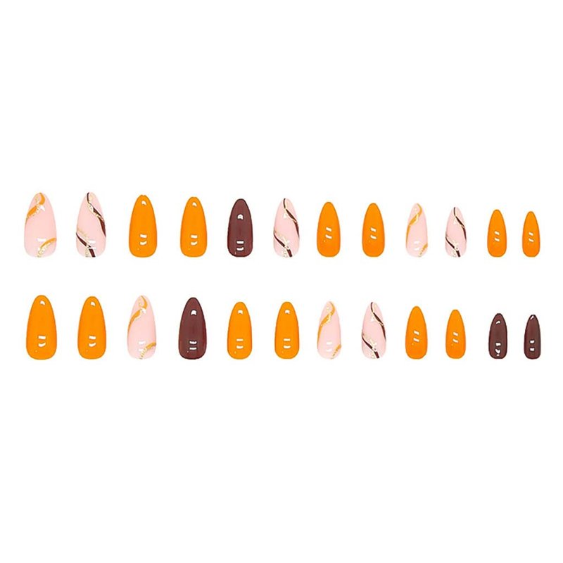 RikView Almond Press on Nails Medium Fake Nails Brown Press on Nails Orange Acrylic Nails Glossy Full Cover Nails