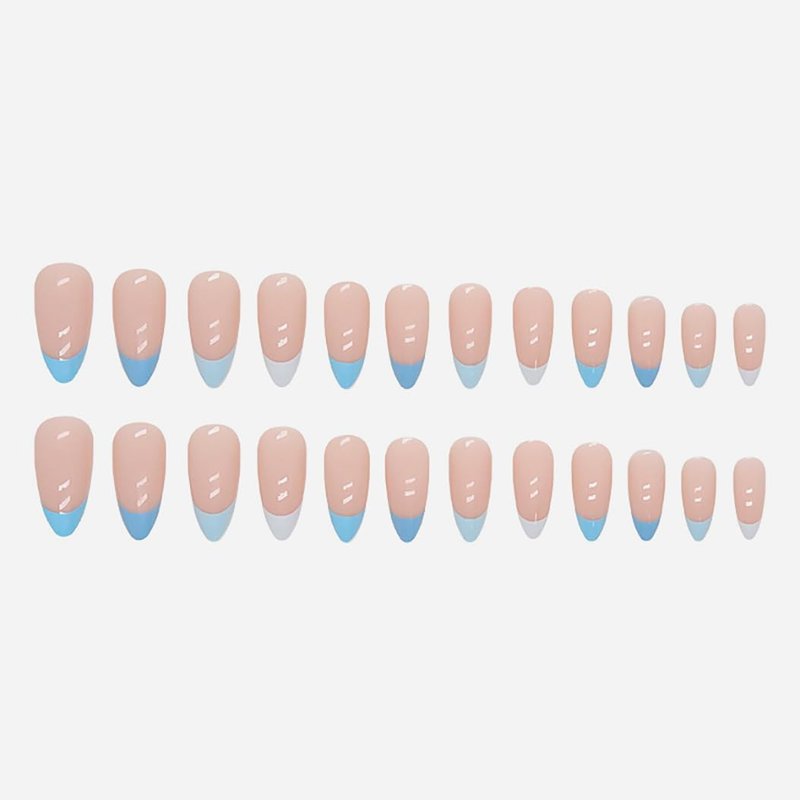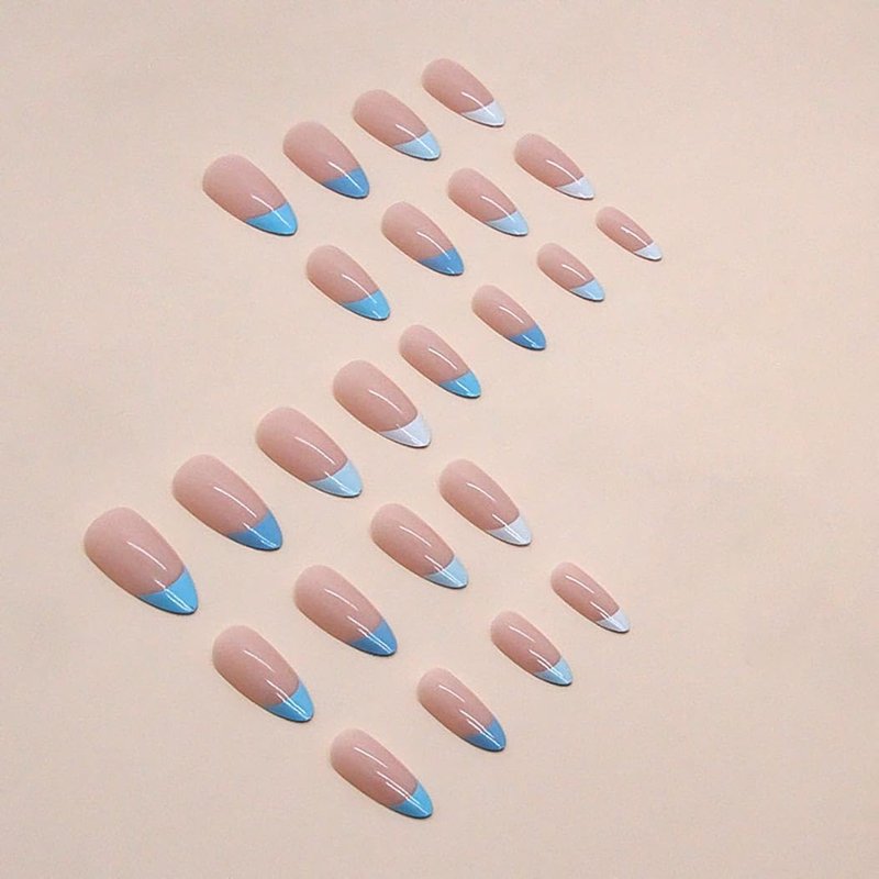 RikView French Tip Nails Almond Press on Nails Medium Fake Nails Blue Nails Glossy Stick on Nails for Women 24 PCS
