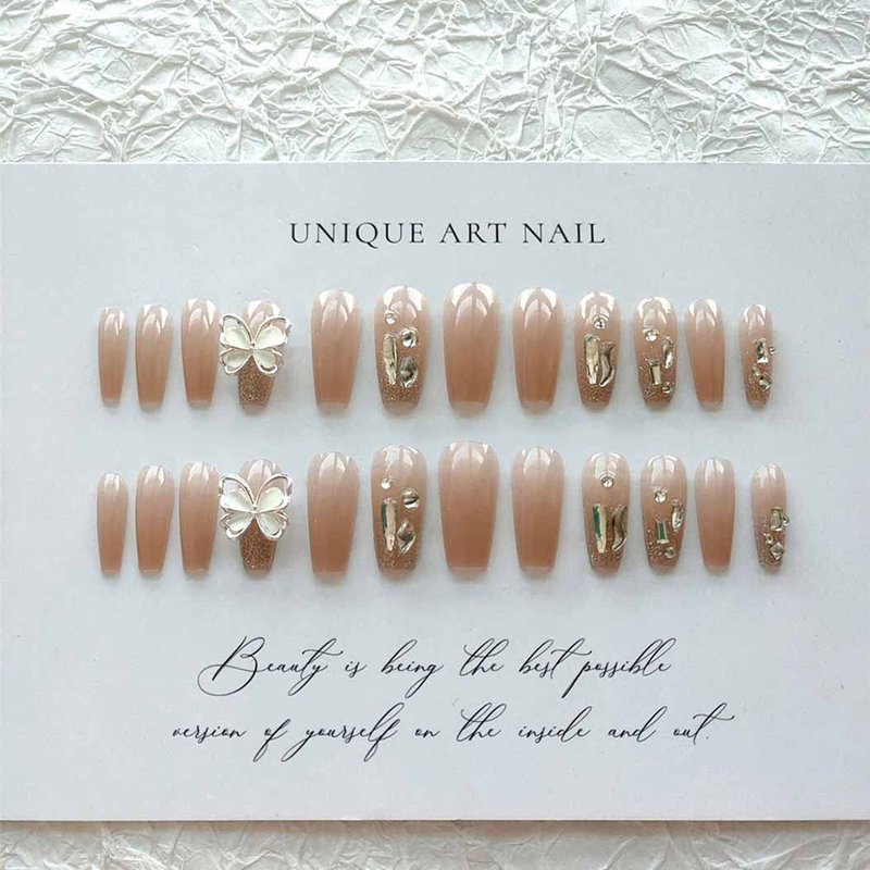 - 【Service Guarantee】If you have any questions about this nude press on nails with butterflies design, please feel free to contact us by Email. In case of transportation damage or quality problems, REPLACEMENT guarantee is provided.