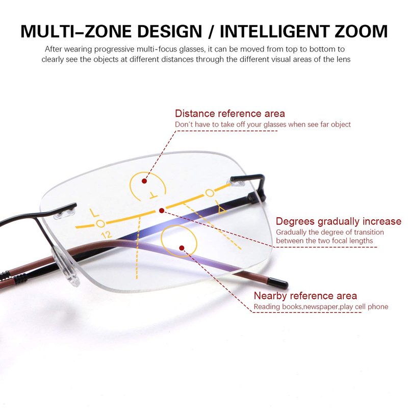 Rimless Progressive Multifocus Reading Glasses Blue Light Blocking No Line Multifocal Computer Readers for Women Men Rectangular Eyewear Titanium Lightweight Magnification Presbyopia Eyeglasses
