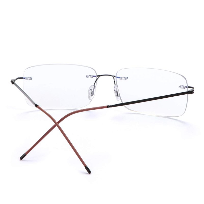 - ❤HIGH QUALITY TITANIUM FRAME - The super light pure titanium frame: You can hardly feel them on your face.yet they are unbreakable!metal hinges and high elastic spring leg , adjustable nose pads make sure they fit perfectly and are comfortable.Classic style design suitable for various face types.this rimless titanium frame eyewear is very lightweight(only 15g),There are no pressure on the nose bridge.Importantly,the material is safe for the skin that you won't have allergies.