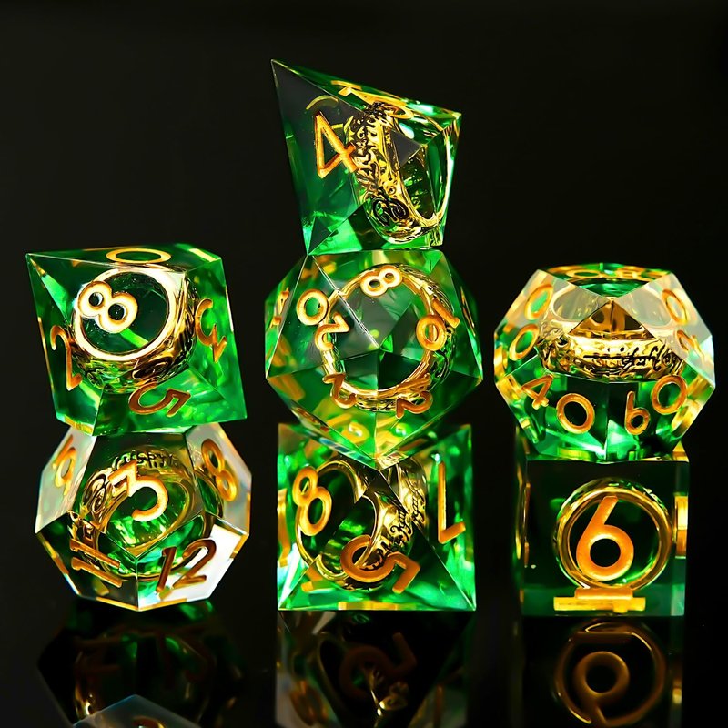 Ring DND Dice Set Sharp EdgeResin Dice,Golden Ring Inclusion Lord of The Rings D&D Dice RPG Role Playing Games, Dungeons and Dragons Polyhedral Dice Set(Green)