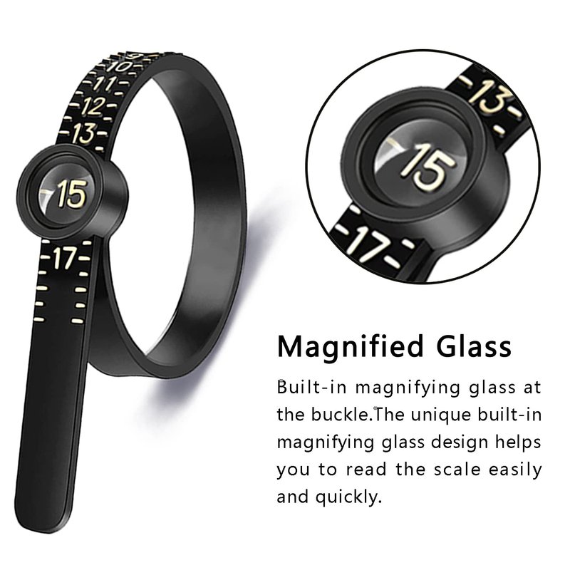 - Magnified Glass: Our ring sizer measuring tool has added a magnifying glass , which can help you to read the correct size easier and faster. A very thoughtful design especially for the elderly.