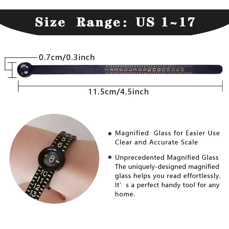 - Ring sizer : 1-17 US size(including half size), suitbale for finger size from 1 to 17. The printing is accurate and clear, enabling you to measure the right size of the finger