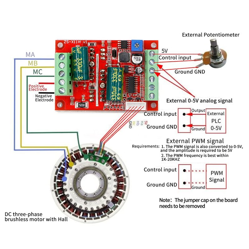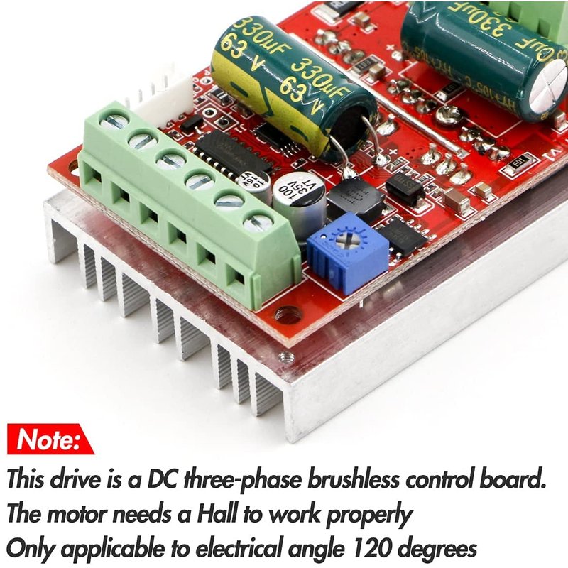 - Three phase DC brushless with Hall motor controller, need motor with Hall to work properly. Brushless motor driver board, high power PLC. This driver is only for DC brushless with Hall motor with electric angle 120 degrees.
