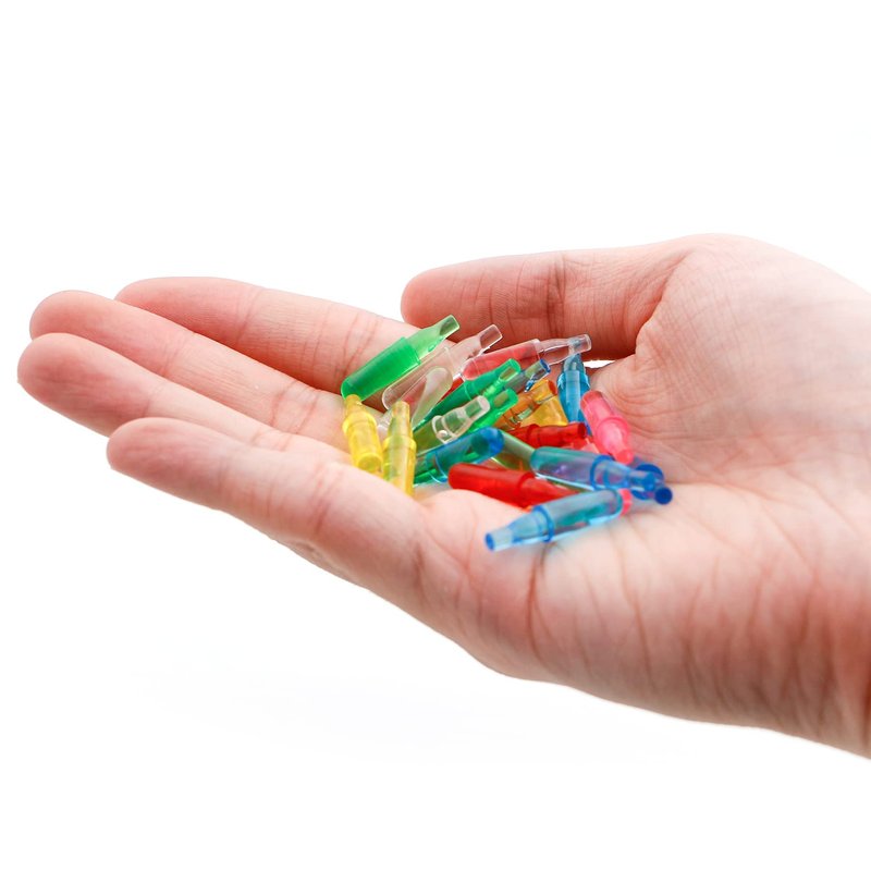 - The package Includes 280 pegs in 7 colors: 40 clear, 40 orange, 40pink, 40 green, 40 blue, 40 yellow,40 red. Pegs are round and shiny