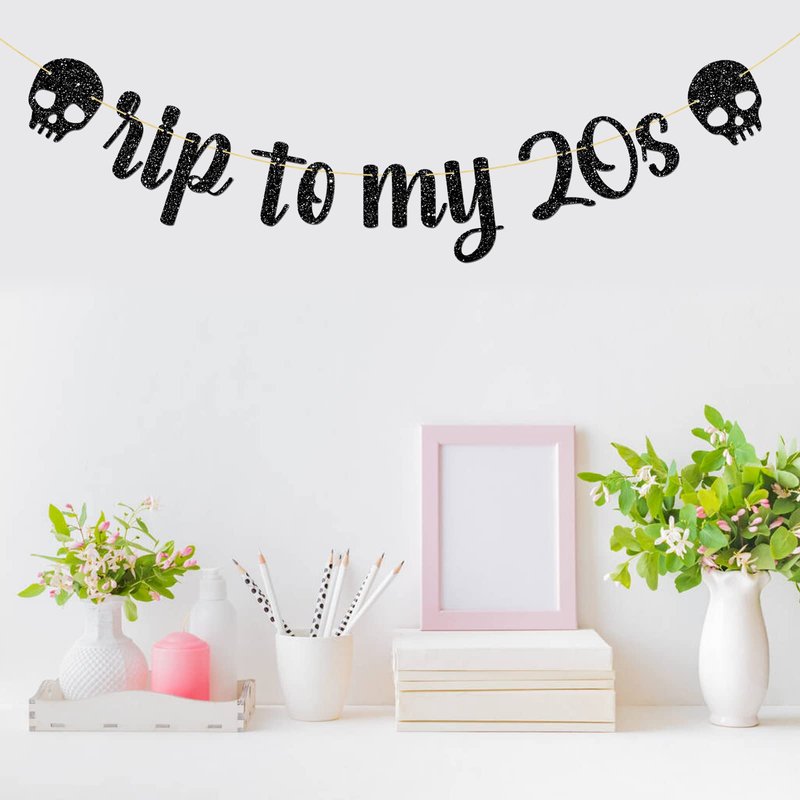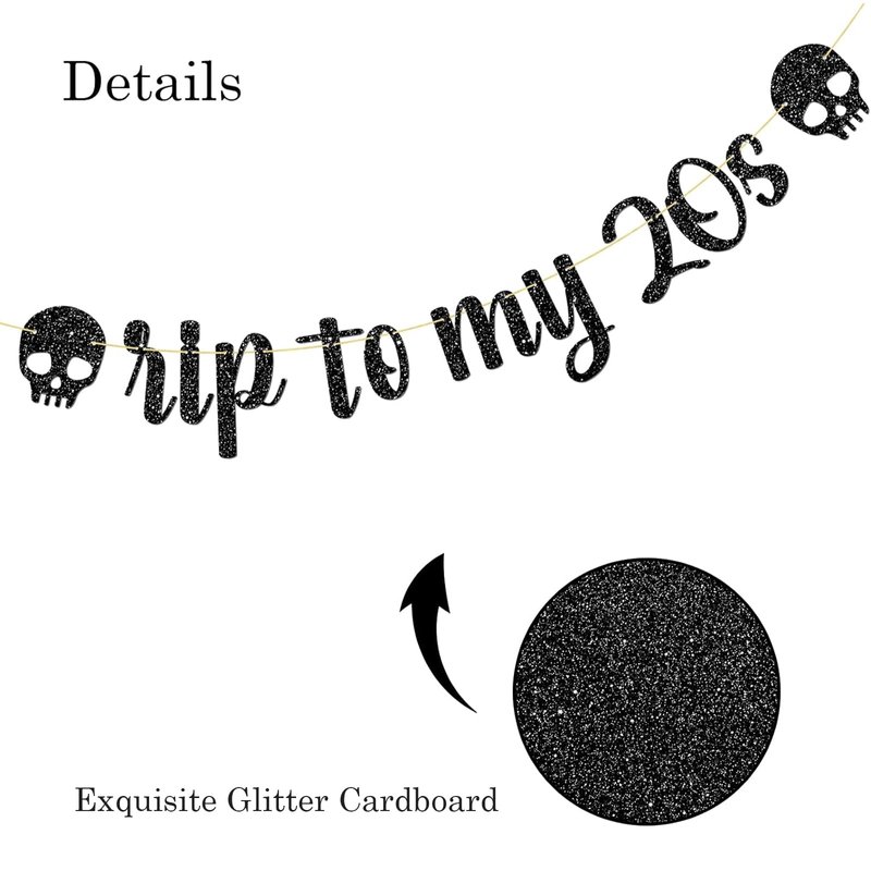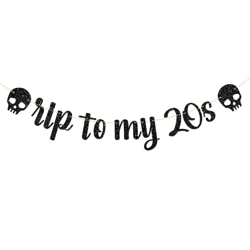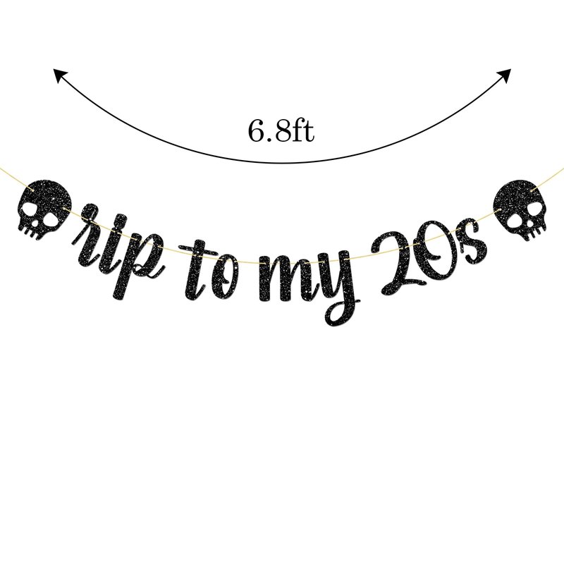 RIP to My 20s Banner, Happy 30th Birthday Banner Decor, Rip Twenties Party Supplies, Glittery Black