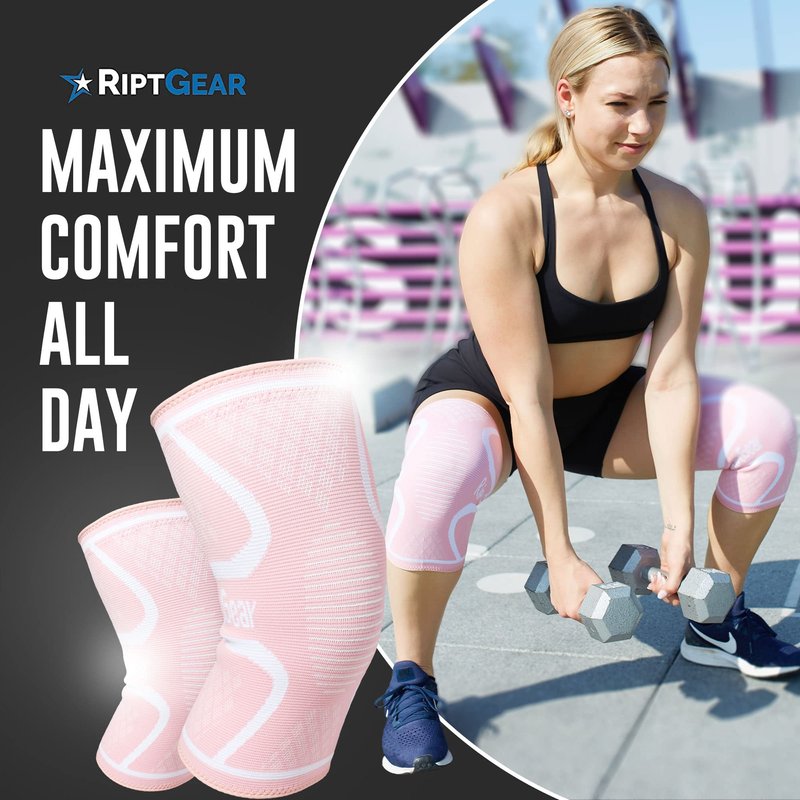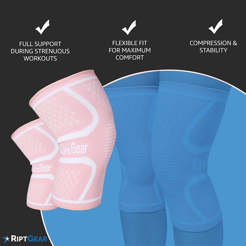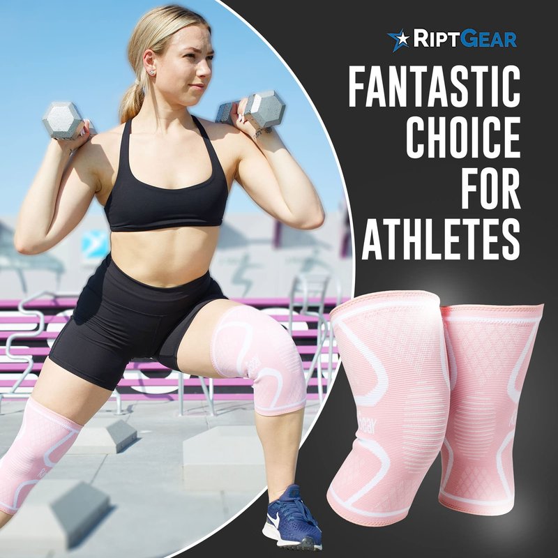 RiptGear Knee Compression Sleeve - 2 Pack - Braces for Knee Pain - Compression for Arthritis, Meniscus Tear, Running - Support for Women and Men - Sleeves Weightlifting Petite (Small, Pink (2 Pack))