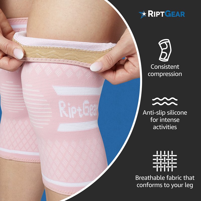 - Premium Brace Design - The RiptGear Knee Compression Sleeve provides firm knee support without slipping. It is constructed using spandex, rubber, and a breathable nylon material. This unique fabric blend helps keep you dry and comfortable by wicking away moisture. There is a ring of silicone that prevents the knee sleeve from slipping.