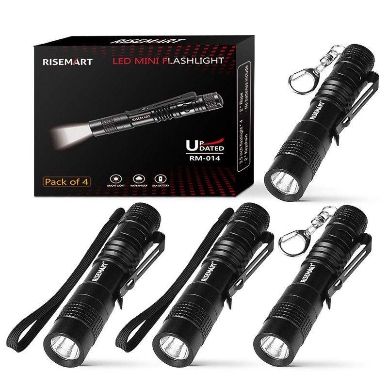 RISEMART Keychain Flashlight, Small Mini Pocket Led Pen Light Super Bright EDC Waterproof 3.5inch Portable with Clip and AAA Battery (Pack of 4) for Inspection, Hiking, Camping