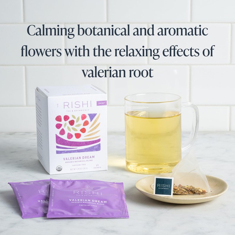 Rishi Tea Valerian Dream Herbal Tea | USDA Organic Direct Trade Sachet Tea Bags, Certified Kosher, Sleep Friendly, Caffeine Free Calming Botanical Blend with Valerian Root | 15 Count (Pack of 1)