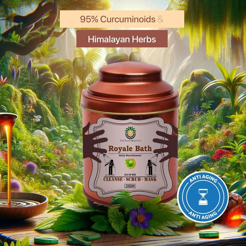 Rishikesh Organics Royale Body Wash | 95% Curcumin & Himalayan Herbs | Anti-Tan, Anti-Acne, Skin Texture Enhancer | 200g