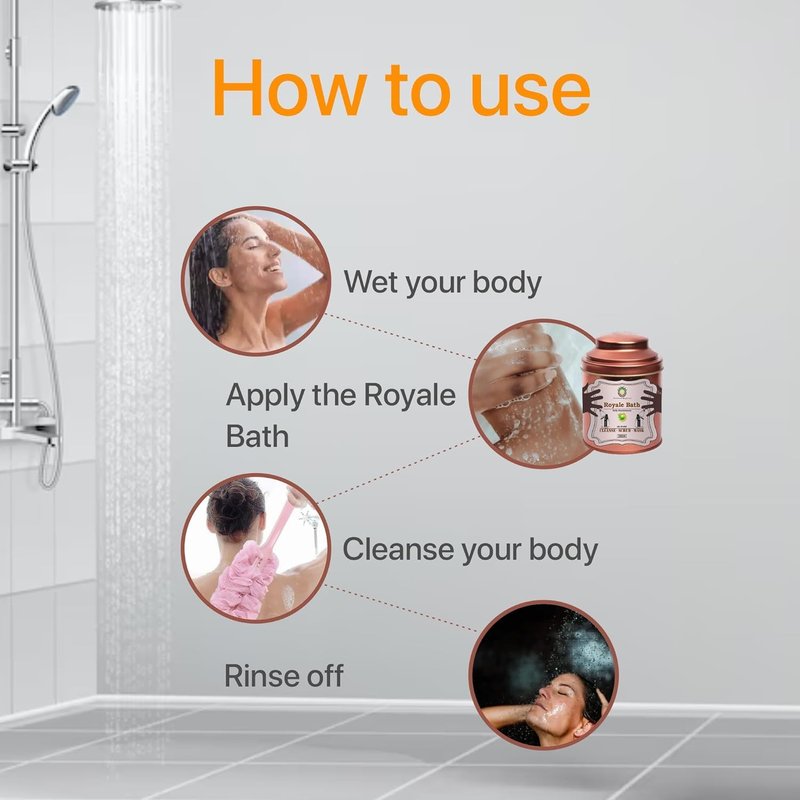- ✔Daily Cleansing: Mix a small amount of the body wash powder with water to create a smooth paste. Apply it to your face and body in gentle circular motions, then rinse off with water. This routine will cleanse your skin thoroughly, leaving it soft and radiant.