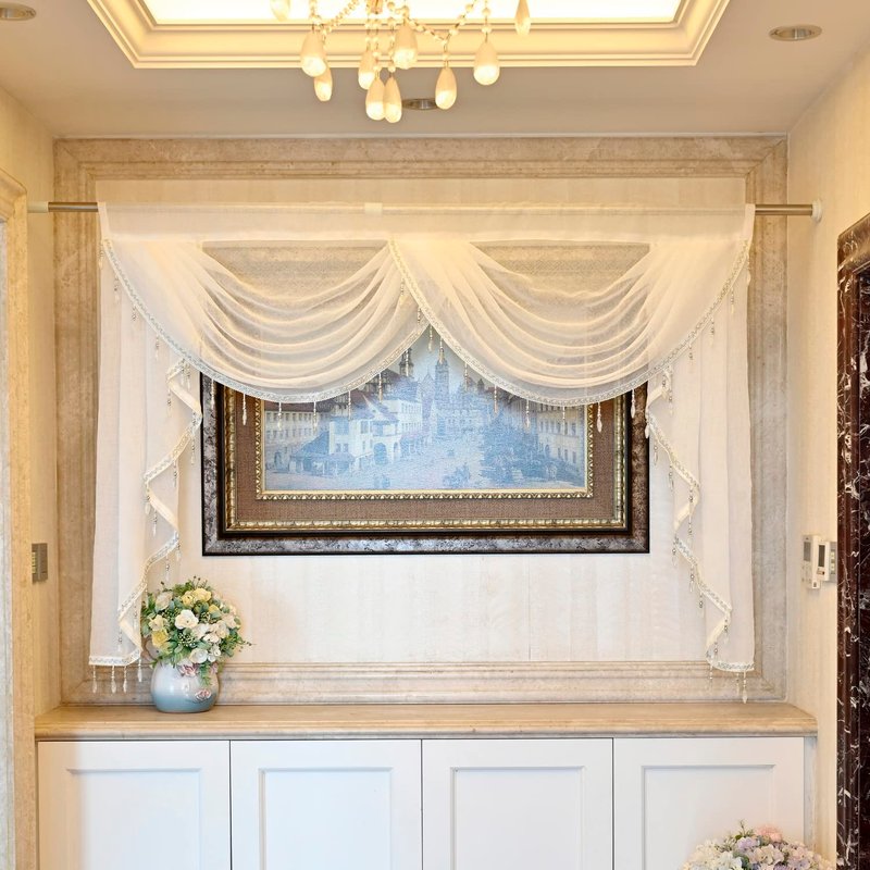 French Romantic Sheer Waterfall Swag Valance for Living Room Bedroom Window Treatment