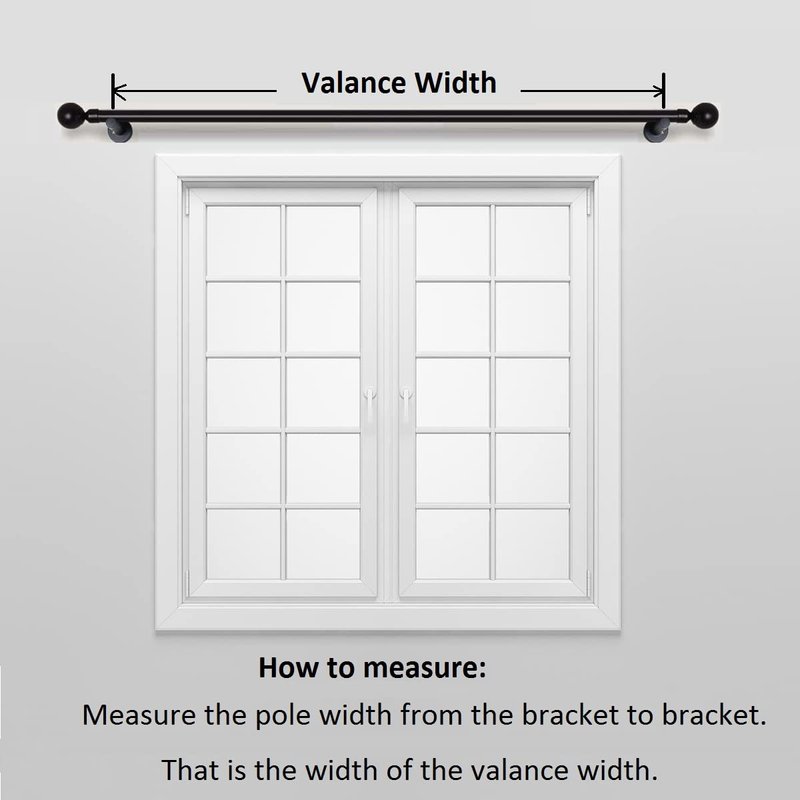 - How to measure: Measure the pole width from the bracket to bracket. That is the width of the valance width.