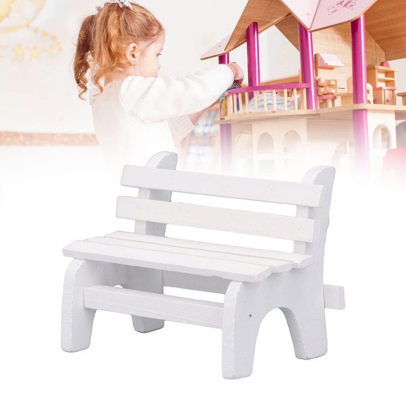 2. White Design: Dollhouse wooden bench with a white color, simple and elegant, for all miniature house furniture and home decor.