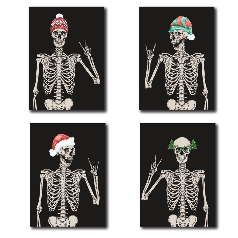 Ritzy Rose 24 Skeleton Christmas Cards in 4 Fun Holiday Illustrations + Envelopes
