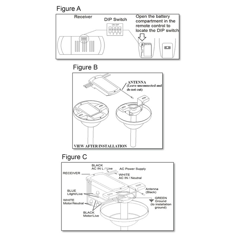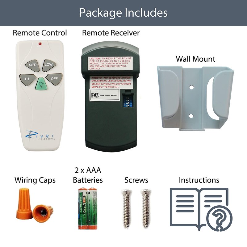 - EASY INSTALLATION: Simply set dip switches, install two (2) AAA batteries into remote (included) and install receiver into hanging bracket of fan.